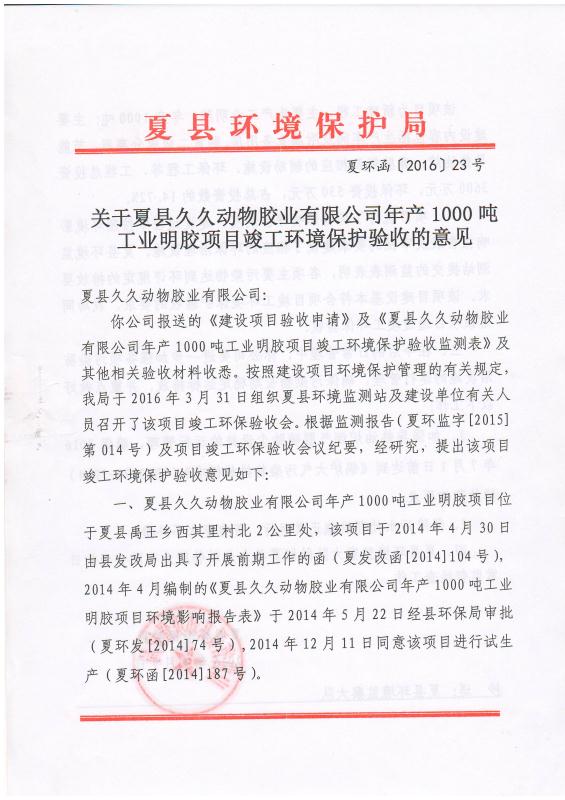 夏县环境保护局环保验收文件